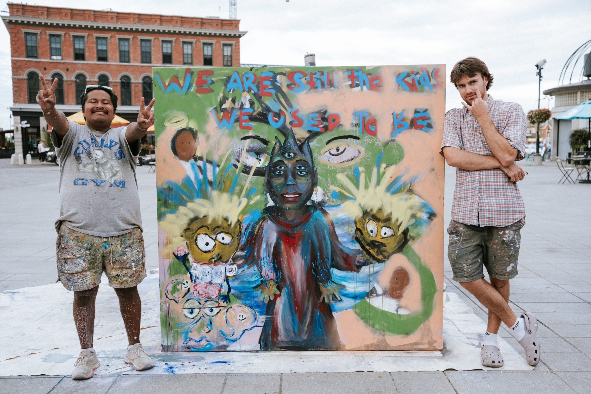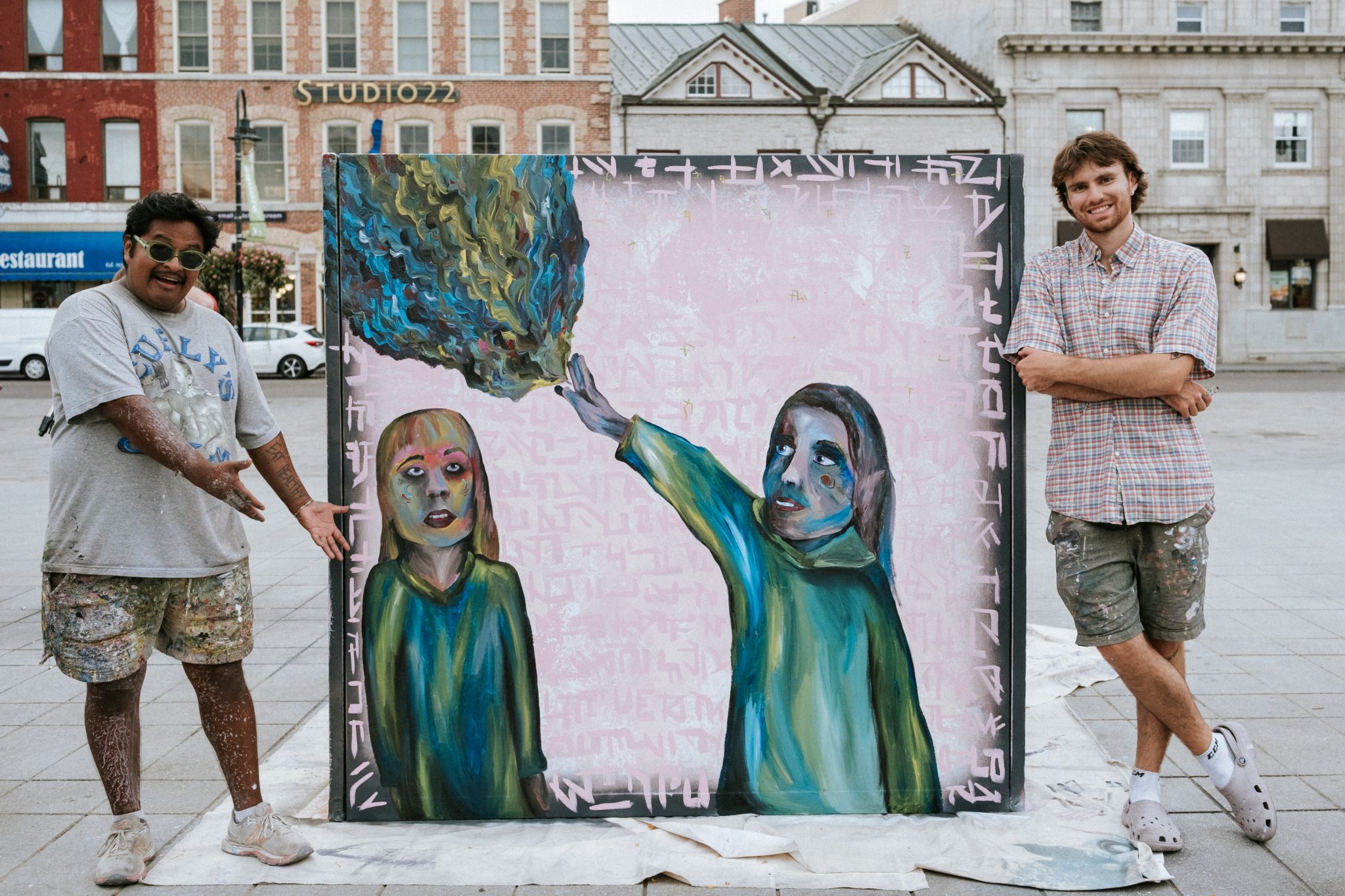 We erected a massive cube made of 4 canvases in the middle of the city and painted it for 24-hours straight, all to raise money and awareness for the youth shelter in town.